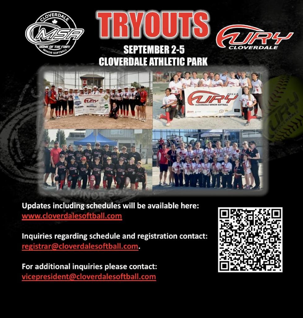 For additional inquires contact Ryan @ vicepresident@cloverdalesoftball.com